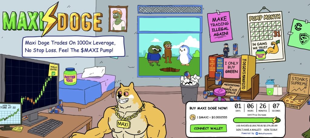 With $1.8 million now raised in its increasingly popular presale, Maxi Doge (MAXI) is an Ethereum-based meme coin that offers a twist on the familiar Dogecoin motif.