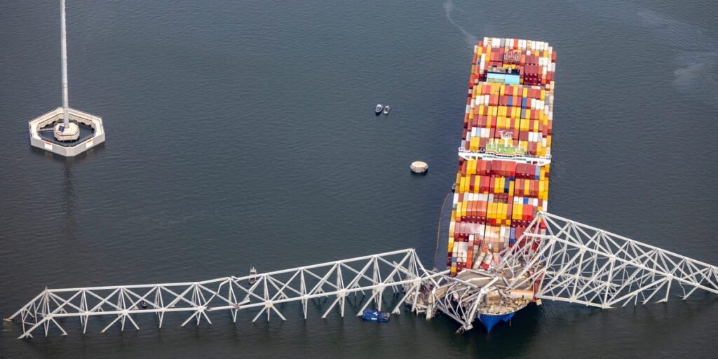 The collision occurred at around 1:28 a.m. on Tuesday, per a livestream of the incident viewed by BI. A video clip posted on X showed the bridge’s structure crumbling after the Dali hit one of its support beams.