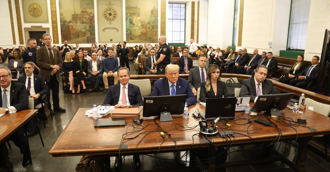 Donald J. Trump began his testimony Monday before a packed Manhattan courtroom, filled with onlookers. They had come to witness the spectacle of a former U.S. president taking the witness stand at trial to defend his family business and his reputation as a real estate mogul.
