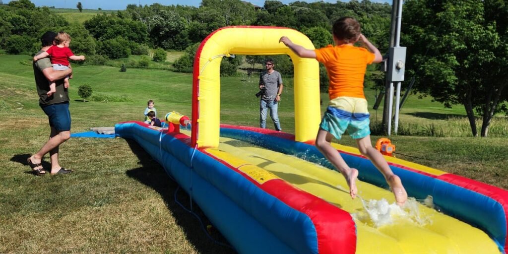 Day two was Canada Day, so our third son had the day off and joined us with his 1-year-old. The all-boys crew of five proudly wore matching red T-shirts printed with a white maple leaf. The weather was sweltering, so we set up a 30-foot inflatable slip ‘n slide that we had gotten for the occasion. Needless to say, it was a hit. The kids also blasted each other with refillable silicone water balloons while the adults and babies chilled and chatted in the breezy shade.