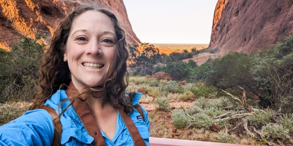 Author Jenna DeLaurentis smiling in the Outback near hostel