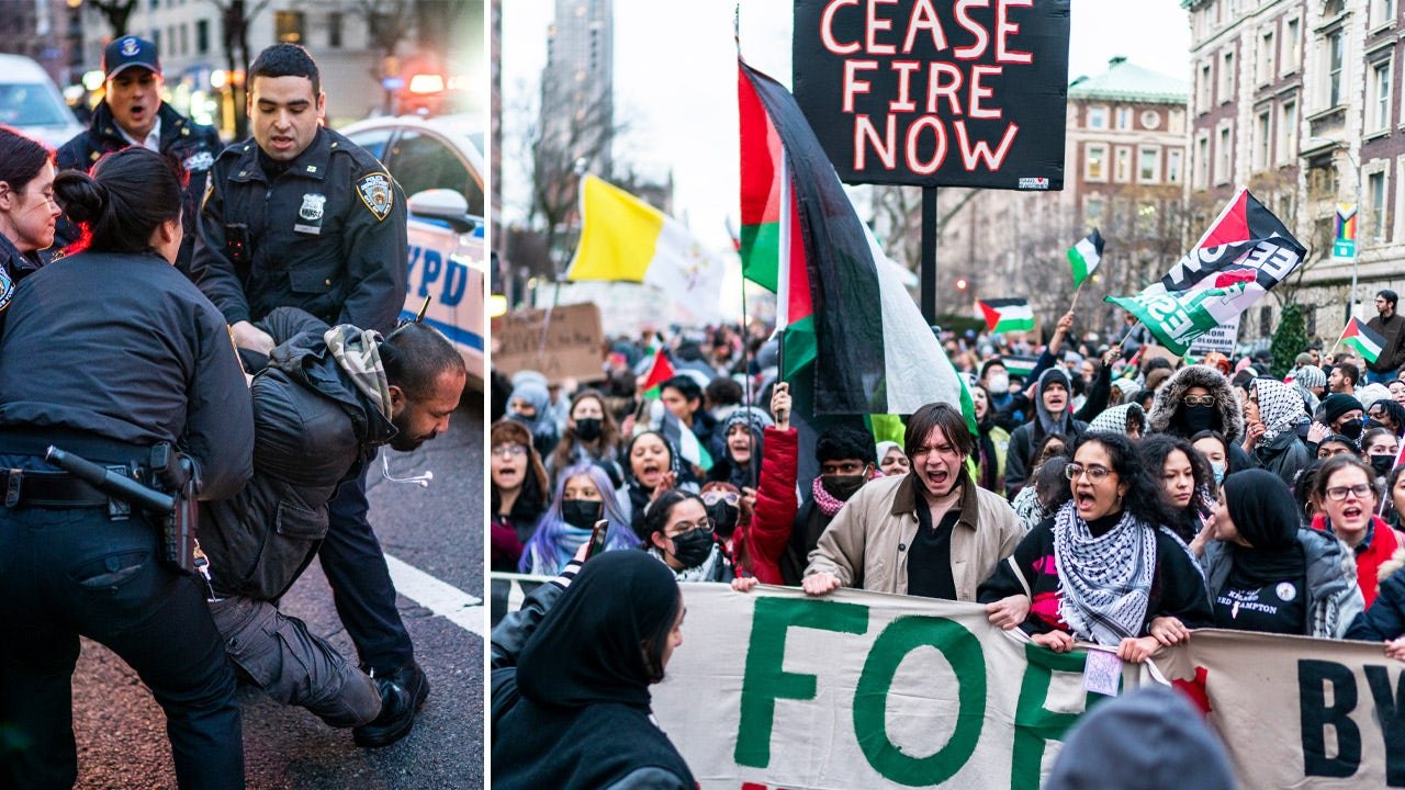 A rowdy anti-Israel protest outside of Columbia University reportedly led to the arrests of pro-Palestinian demonstrators, who clashed with NYPD officers and shouted anti-cop chants.