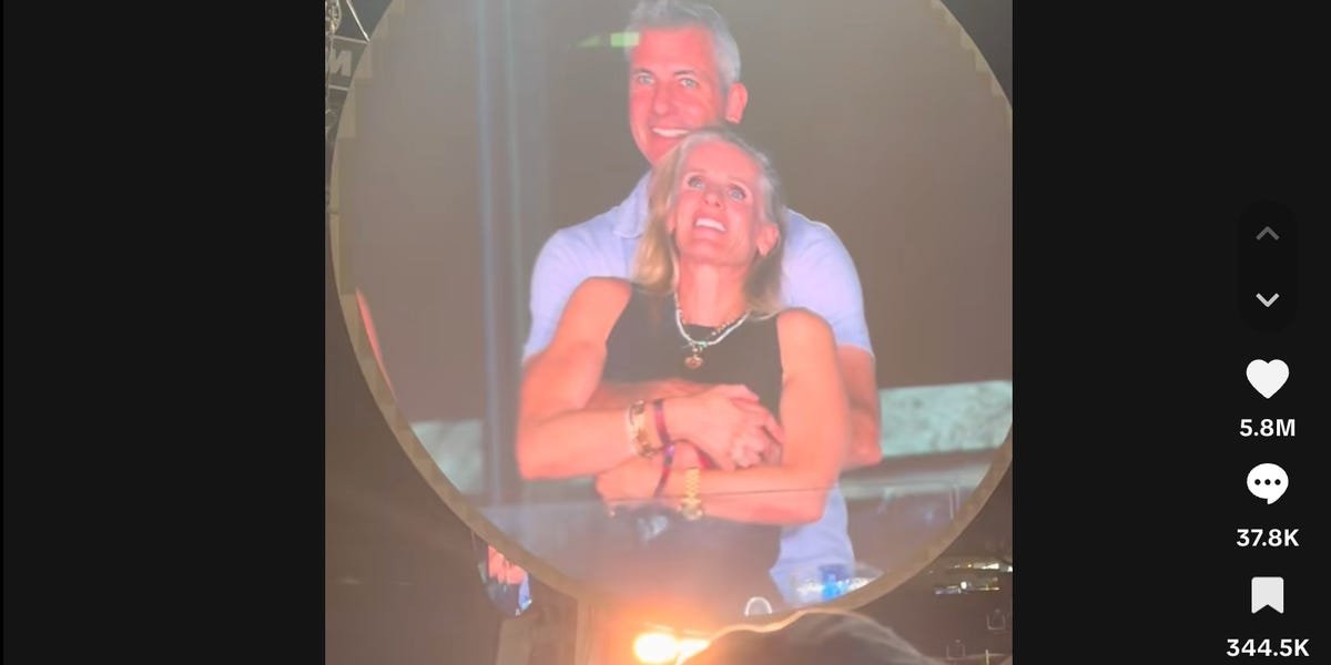 A clip appearing to show Byron and Kristin Cabot, Astronomer’s head of people, caught in “kiss cam”-style crowd footage at a Coldplay concert went viral on Thursday. The pair appeared horrified to be broadcast on the jumbotron at Gillette Stadium and quickly untwined, prompting Coldplay front man Chris Martin to speculate that they were “having an affair or they’re just very shy.”