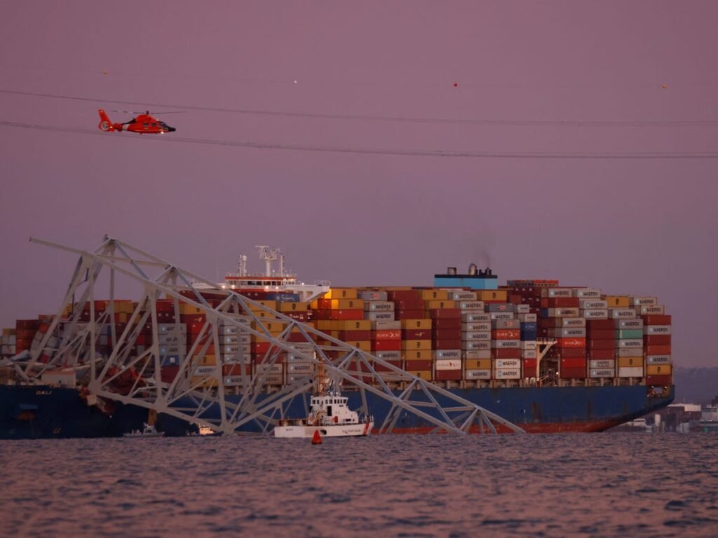 The Dali container ship collided with one of the bridge’s support beams early Tuesday morning, causing large portions of the 1.6-mile bridge to collapse into the Patapsco River, with the wreckage effectively blocking ships from moving in and out of the Port of Baltimore.
