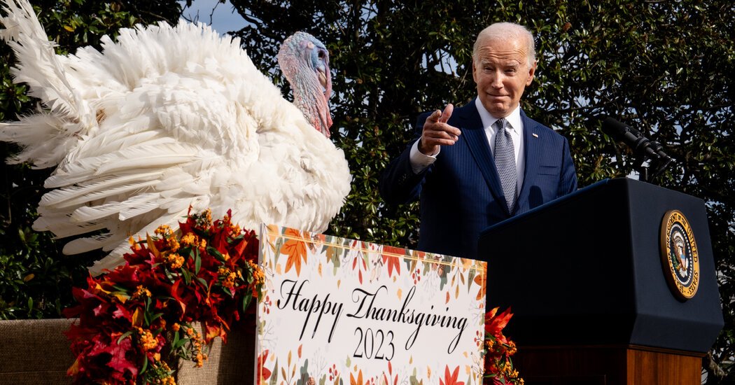 Describing the more than 1,000 miles the turkeys traveled to appear at the White House, Mr. Biden said, “You could say it’s even harder than trying to get a ticket to the Renaissance tour, or for Britney’s tour.” He added, “She’s down in, it’s kind of warm in Brazil right now.”