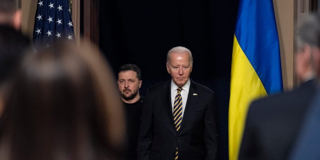 On Tuesday, Biden and Ukrainian President Volodymyr Zelenskyy addressed reporters on the state of aid to Ukraine, which has been blocked by Republicans in Congress.