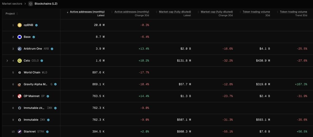 Coinbase also controls its own Layer 2 network, Base. Much of its infrastructure runs on it. In 2024, Base was one of the most profitable L2s. More recently, it has been overtaken by Binance’s opBNB across several metrics. Even here, the rivalry between the two exchanges is visible. Base now ranks second. It still sits ahead of Arbitrum (ARB).