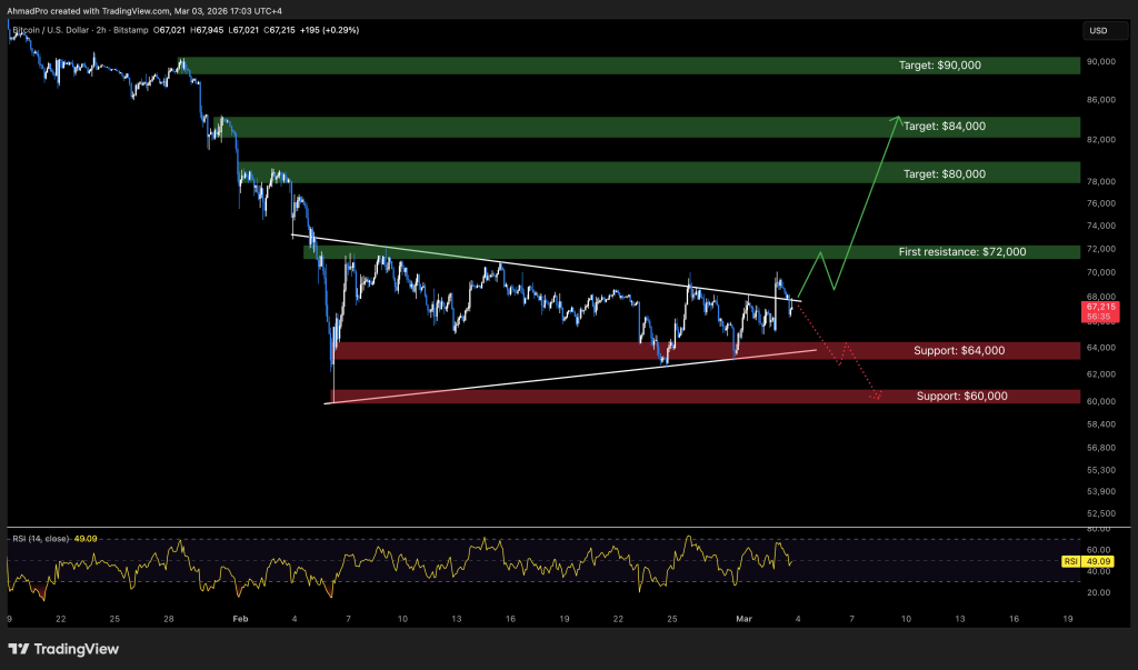 That said, the whole setup is not ruined yet. If $64,000 holds and Bitcoin reclaims the upper trendline again, this could still turn into a shakeout.