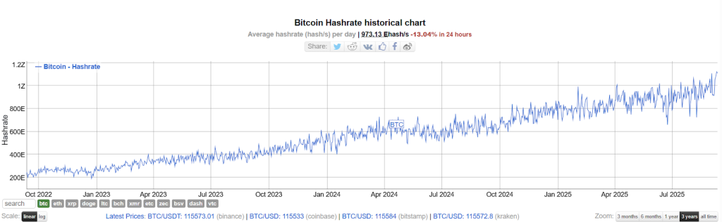 Bitcoin Hash Rate Hits Record 1.12B TH/s as Network Difficulty Surges – Will BTC Break $117K?