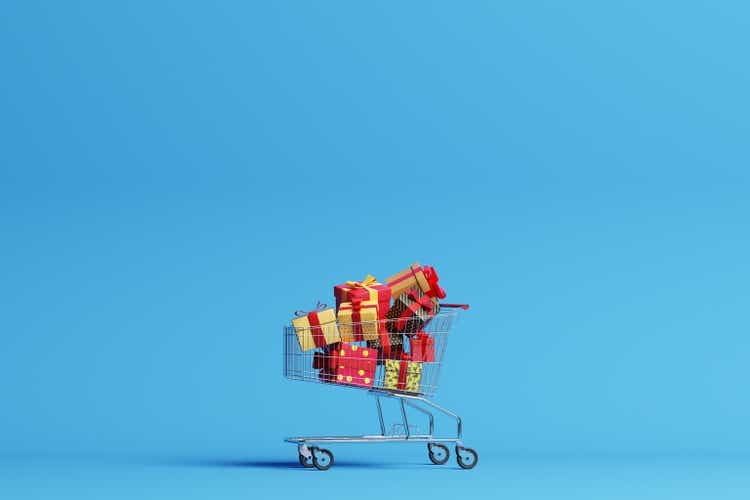 Shopping cart filled with christmas gifts