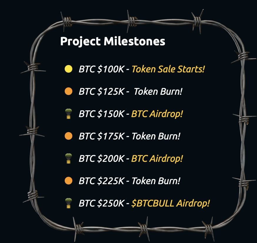 BTC Bull Token can’t replicate that kind of digital gold status on Burns alone, and it doesn’t try to. Its power is in linking directly to Bitcoin’s price. Milestones are pre-programmed, so BTCBULL holders receive actual Bitcoin payouts whenever BTC hits new thresholds.