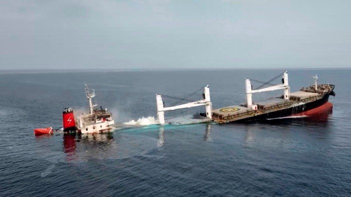 Cargo ship sunk by Houthi militants faces losses after sailing uninsured