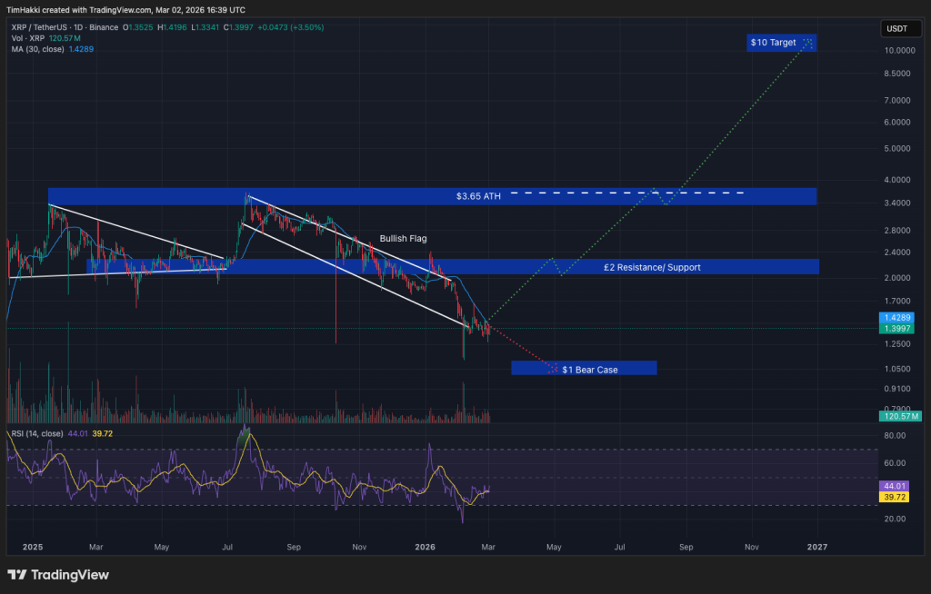 With XRP currently trading around $1.41, ChatGPT projects a potential rally toward $10 in 2026, a move that would represent 7x for current holders.