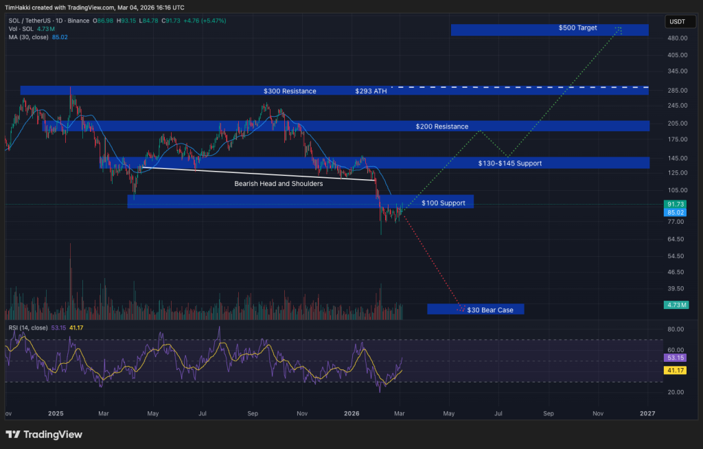 Despite this, SOL pulled sharply back toward the end of 2025 and spent much of February trading below $100.