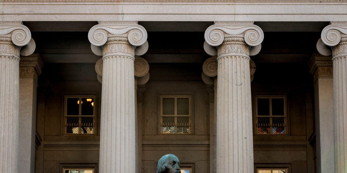 The US Treasury building in Washington, DC, US, on Tuesday, Dec. 31, 2024. The US Treasury Department was hacked by a Chinese state-sponsored actor through a third-party software service provider, according to a letter the agency sent to Congress on Monday.