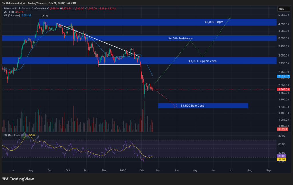 From a technical perspective, ETH is trading below its 30-day moving average, with the relative strength index sitting near oversold levels around 33. For bullish investors, now is a compelling accumulation opportunity.