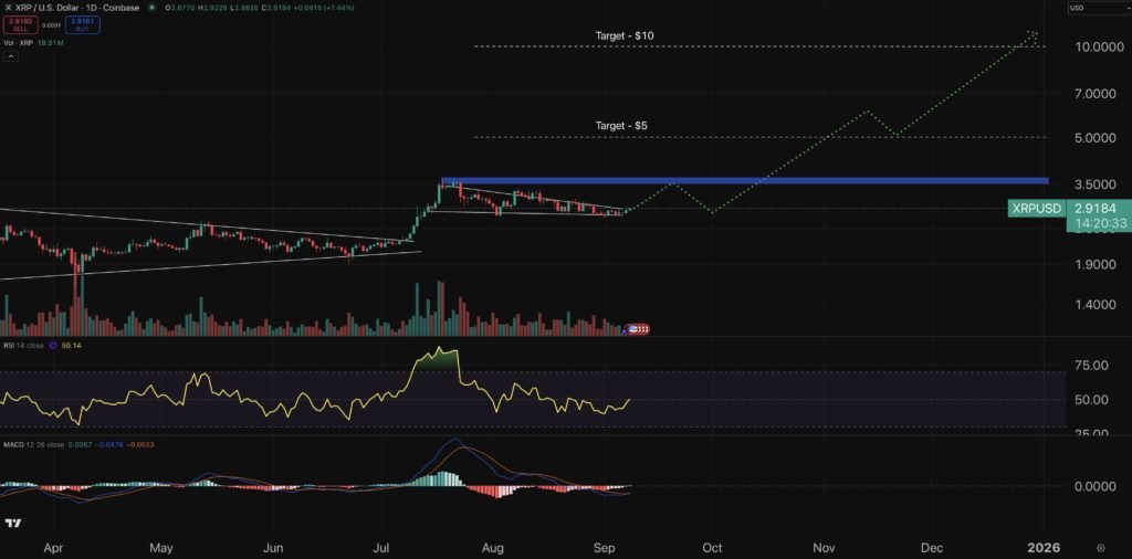 This is potentially a very bullish sign, with the XRP price on course to hit $3 in the next week or so, before returning to $3.50 in October, especially if the Fed cuts rates this month.