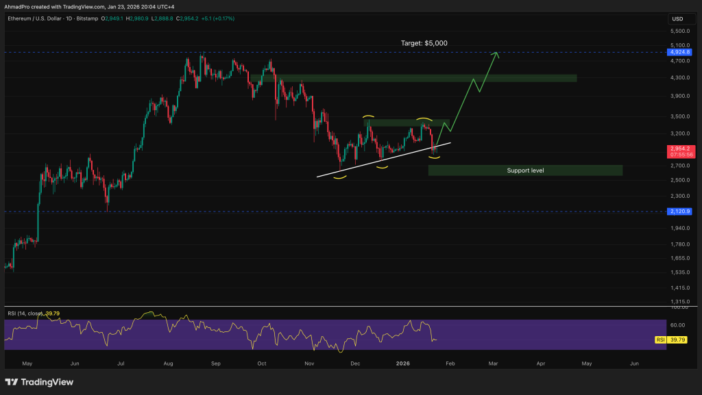 A clean break above $3,500 would be the first real sign of strength and could open the door for a push toward $4,300, with $5,000 as the larger upside target.