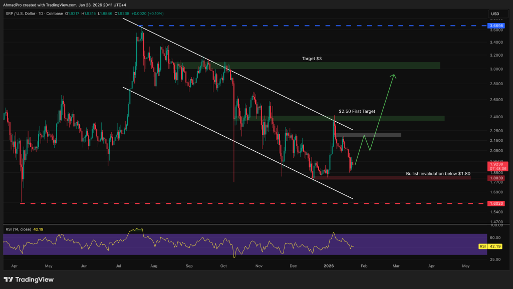 Holding above $1.80 keeps the bullish scenario alive, while a break below that level would invalidate the setup and likely send XRP back toward lower support