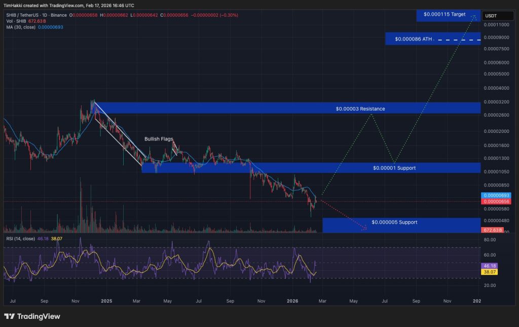 Such a rally would represent roughly 1,668% upside from current levels and would place SHIB just above its October 2021 ATH of $0.00008616.