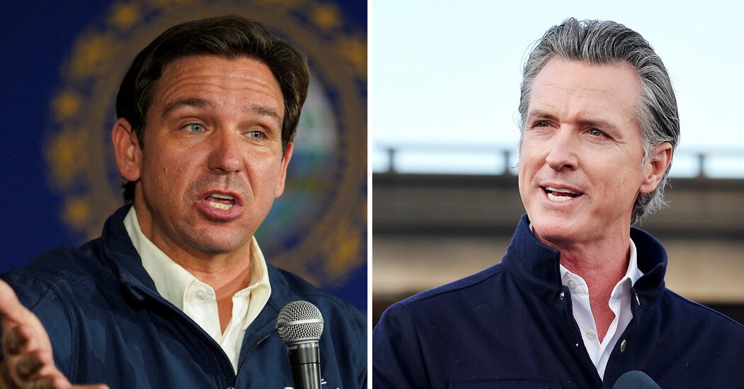 Mr. Newsom has also not held back. During Mr. DeSantis’s re-election campaign, he ran a pointed ad on Florida airwaves criticizing Mr. DeSantis’s policies and recently ran another attacking the six-week abortion ban signed by the Florida governor. He has called Mr. DeSantis “weak” and “undisciplined” and said he would get “crushed” by Mr. Trump in the G.O.P. primary. After Mr. DeSantis sent planeloads of migrants from the southern border to Sacramento this year, Mr. Newsom suggested his Florida counterpart could face kidnapping charges, calling him a “small, pathetic man.”