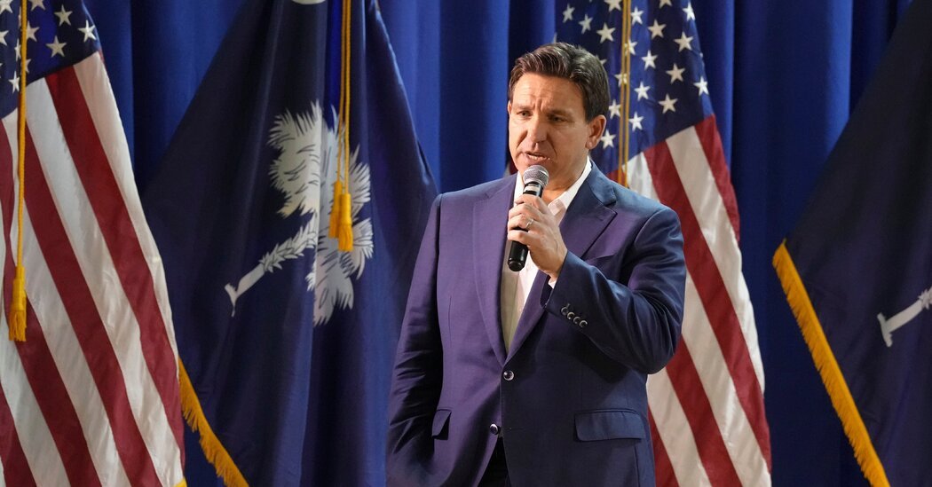 Gov. Ron DeSantis of Florida on Friday swept through South Carolina, his rival Nikki Haley’s backyard, seeking to blunt the rise of the state’s former governor in the Republican primary while capitalizing on his slugfest with the Democratic governor of California.