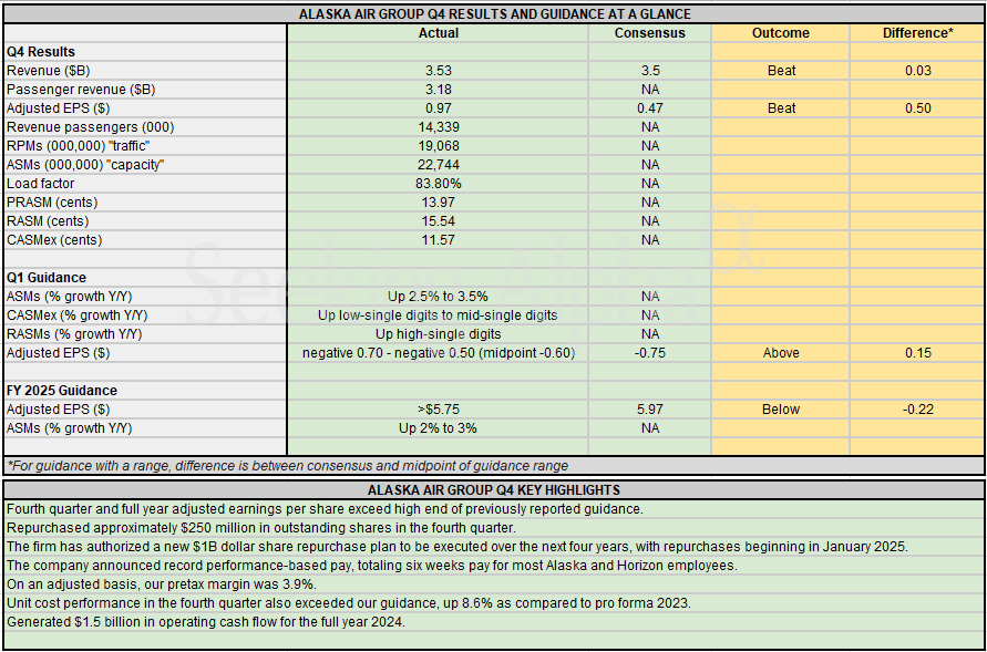 Share Facebook Twitter LinkedIn Pinterest Email Earnings Snapshot: Alaska Air exceeds Q4 expectations; initiates Q1 and FY25 outlook