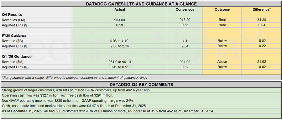 Share Facebook Twitter LinkedIn Pinterest Email Earnings Snapshot: Datadog FY26 outlook lags estimates; Q4 revenue up 29% to $953M
