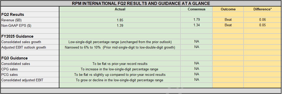 Share Facebook Twitter LinkedIn Pinterest Email Earnings Snapshot: RPM International tops FQ2, FY adjusted EBIT outlook narrowed