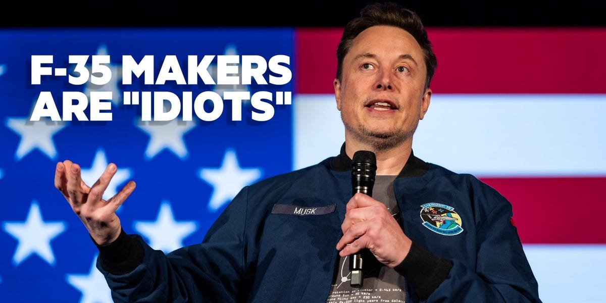 Share Facebook Twitter LinkedIn Pinterest Email Elon Musk is calling F-35 makers "idiots" for building manned jets while drone technology soars. Here's what experts say on the subject. Read the original article on Business Insider
