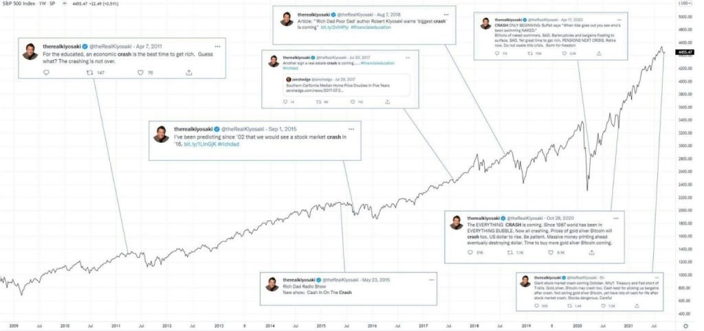 At this point, it feels like he tweets “crash” every time he spills his coffee. Sure, the market looks rough right now, but Kiyosaki’s track record isn’t exactly great. His posts often get roasted in the comments, and historically, the market tends to do the opposite of what he predicts.