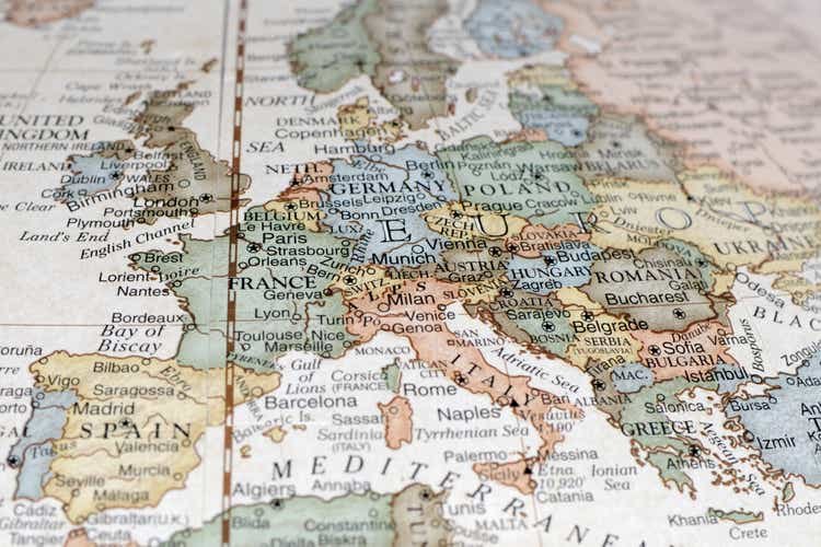 A map of Europe and its continents