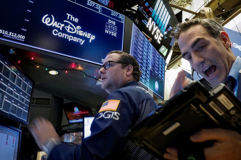© Reuters. FILE PHOTO: The logo of the Times Square Disney store is seen in Times Square, New York City, U.S. December 5, 2019. REUTERS/Nick Pfosi/File Photo