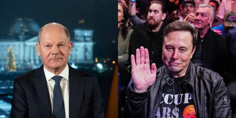 • Musk called Scholz an “incompetent fool” and signaled his support for Germany’s AfD party.