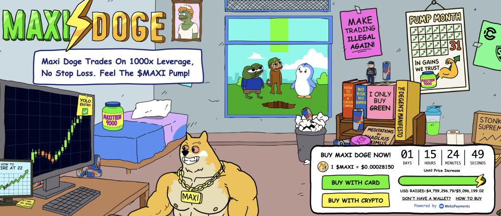 Maxi Doge is getting attention in that space. It leans fully into the meme and leverage-trader narrative, but it is also building engagement mechanics around it. The presale is sitting around $0.0002815 with roughly $4.75M raised, and getting close to the $5M mark, which often brings more visibility and momentum.