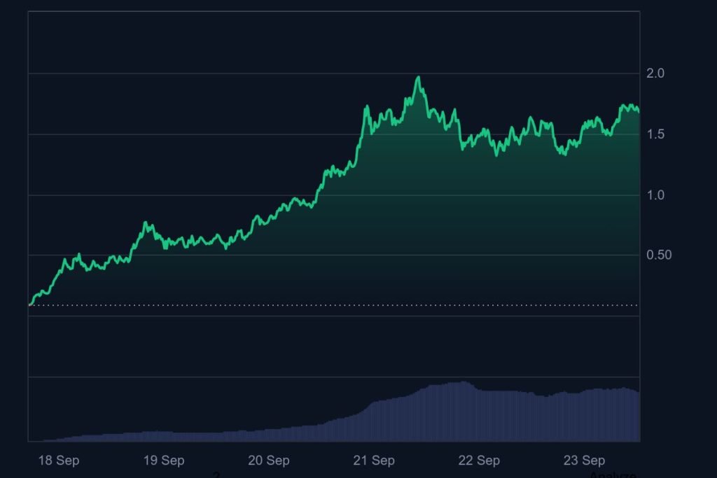 The backing from CZ created significant hype around the Aster token. The project’s narrative, which combines a decentralized exchange model with a native stablecoin, looked promising at first. The price surged by about 2,250% in the week after launch. Most of the action took place over the weekend of Sept. 20-21. On Sunday, the token traded close to $2, even though it had started below $0.09.