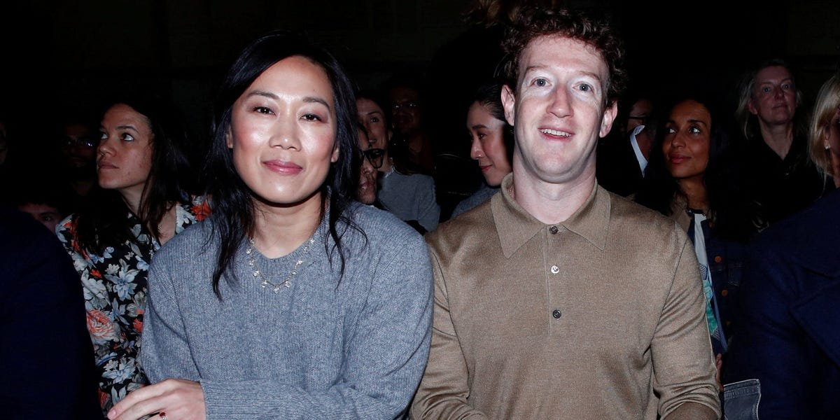 Priscilla Chan and Mark Zuckerberg at a 2026 Prada runway show in Milan.