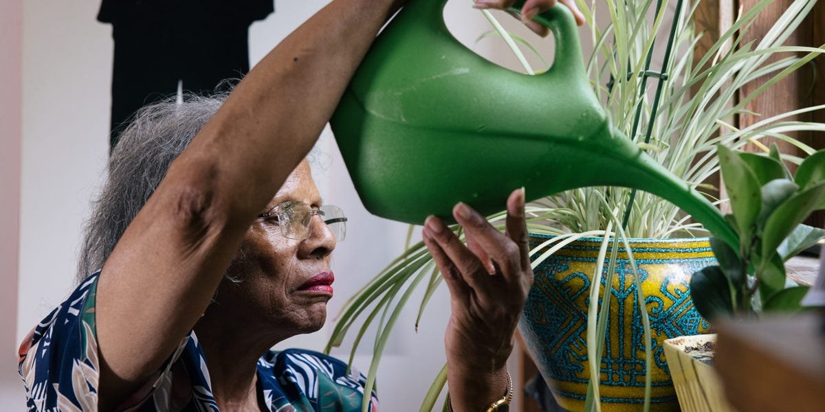 Pat Fagin Scott waters her plants