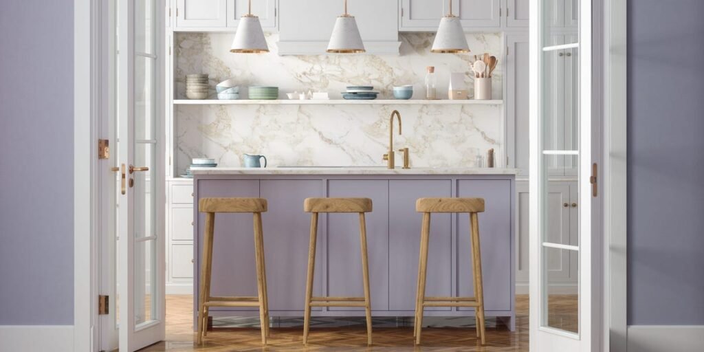 “All-white kitchens are definitely out, and that includes white-and-gray marble,” Peck said.