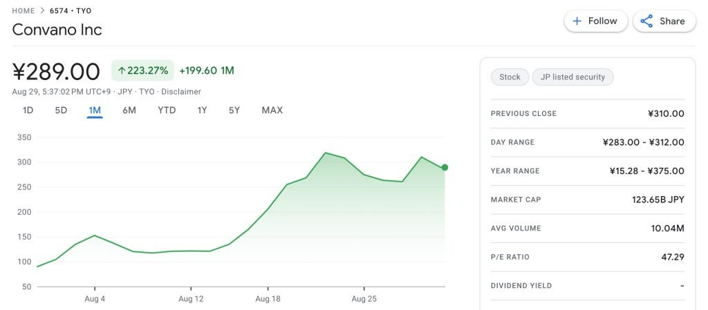 The Bitcoin acquisition announcement has driven Convano’s stock higher, with shares climbing 223.27% in the past month and surging 1,414.68% YTD.