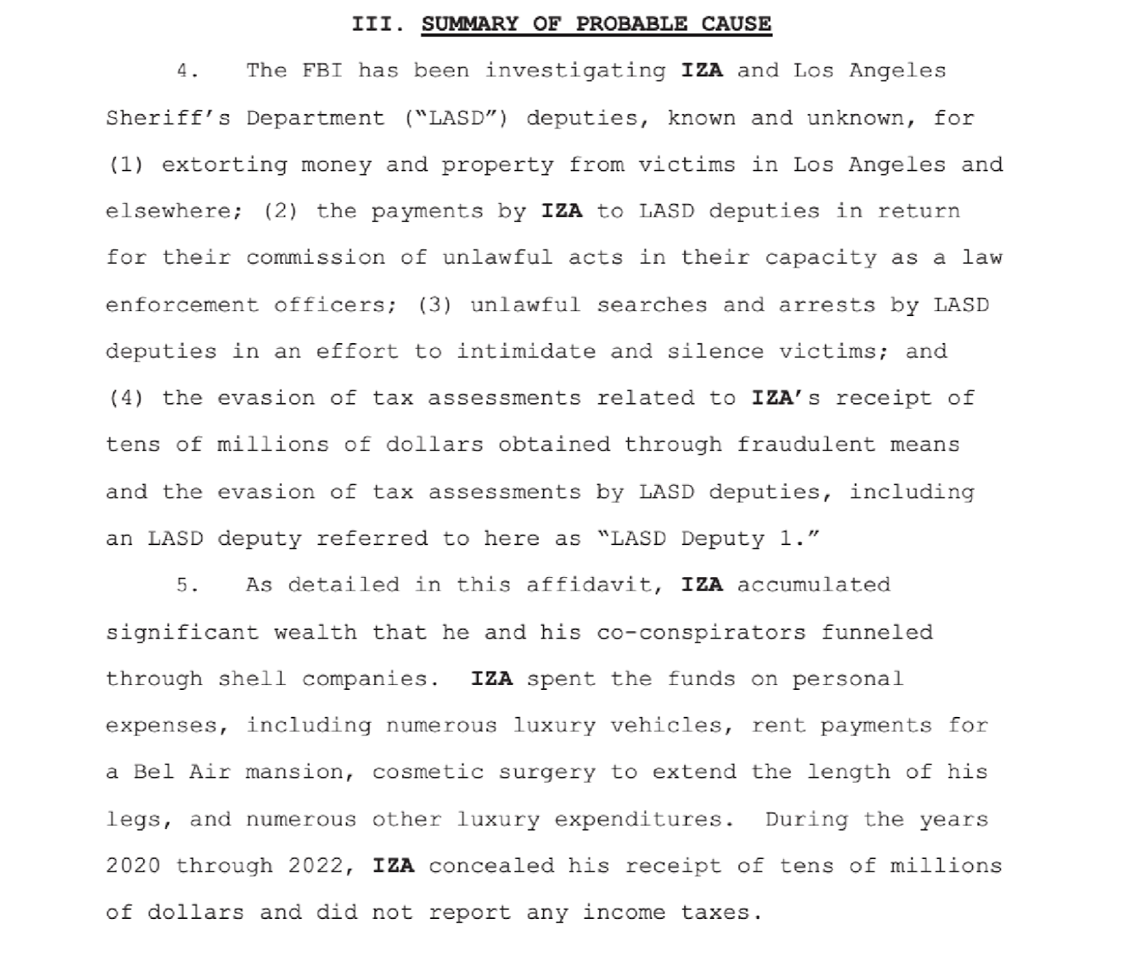 Court filings revealed Iza paid as much as $280,000 monthly to deputies he called his “pawns.”