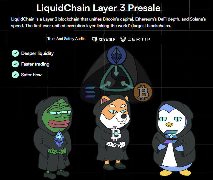 This is the backdrop against which LiquidChain (LIQUID) has entered the conversation. The project says it is developing a Layer-3 network to coordinate liquidity across Bitcoin, Ethereum, and Solana. It is currently funding that development through a crypto presale for its native LIQUID token.