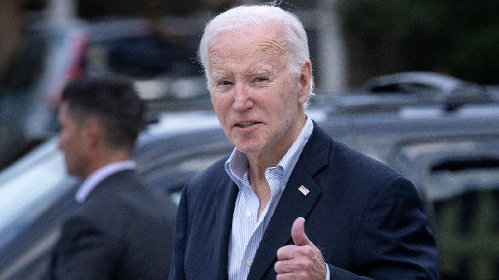US President Joe Biden gives a thumbs up as he leaves St. Edmond Roman Catholic Church in Rehoboth … [+] Beach, Delaware, on November 4, 2023. A key Biden student loan forgiveness deadline is next month. (Photo by Brendan Smialowski / AFP) (Photo by BRENDAN SMIALOWSKI/AFP via Getty Images)