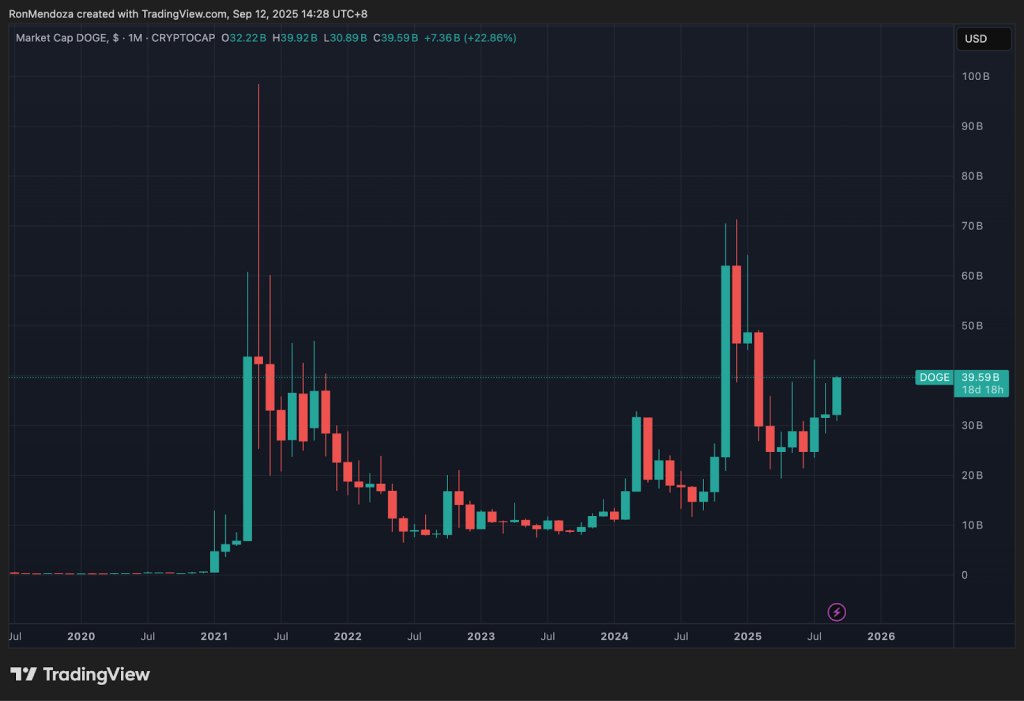 The days when Musk would go wild shouting on national television “to the moon” are long gone, and DOGE has never touched the highs it reached during that frenzy in 2021.
