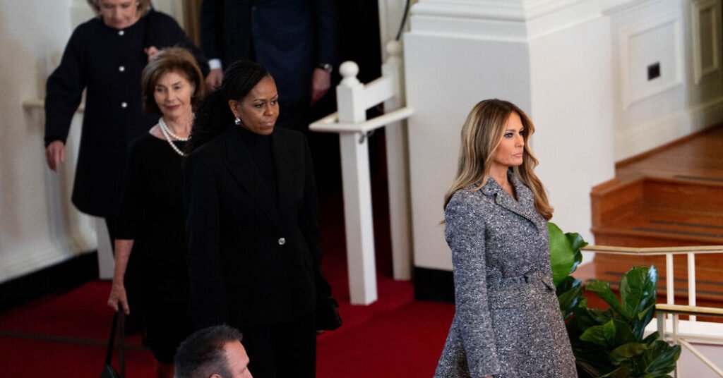 It was the first time since George H.W. Bush’s funeral, in 2018, that all of the living first ladies had been in one place. (Mrs. Trump did not attend President Biden’s inauguration.) As they sat one next to the other, diplomatically arranged in order of administration — Trump, Obama, Bush and Clinton, with Mrs. Biden next to former President Jimmy Carter — they offered an extraordinary snapshot of what Jason Carter, Mrs. Carter’s grandson, called in his remarks a “remarkable sisterhood.”