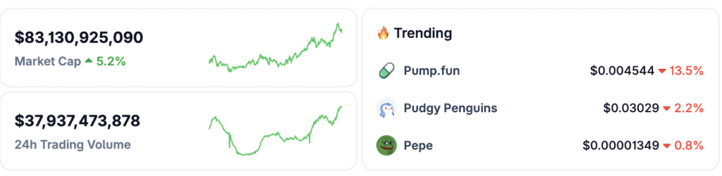 According to CoinGecko data, daily trading volume has reached $37.7 billion, with Dogecoin maintaining its dominance, despite newer tokens gaining ground, with a $36 billion market cap.
