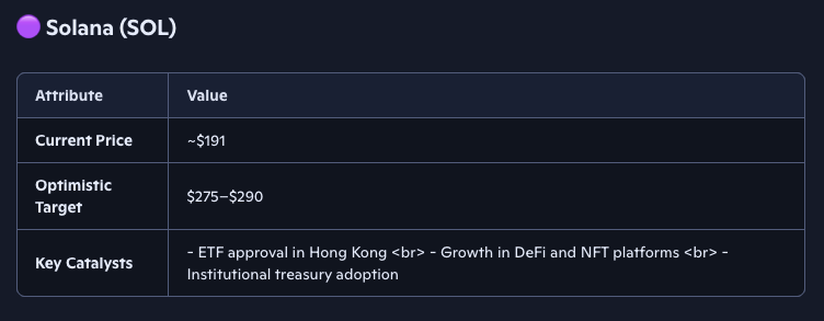 Solana is also well-positioned to benefit from emerging trends such as real-world asset tokenization and the expansion of stablecoin infrastructure, both gaining institutional traction. With faster transaction speeds and lower fees than Ethereum, Solana remains one of the most promising candidates for large-scale adoption.
