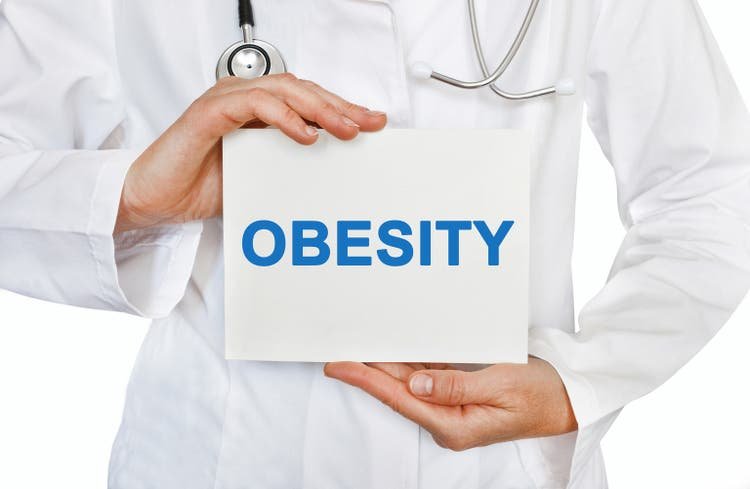 Obesity card in hands of Medical Doctor