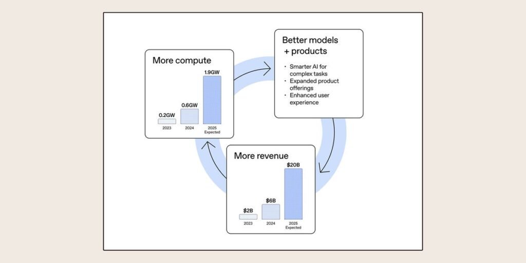In the chart, OpenAI illustrated how “more compute” leads to “better products,” which in turn leads to “more revenue.”