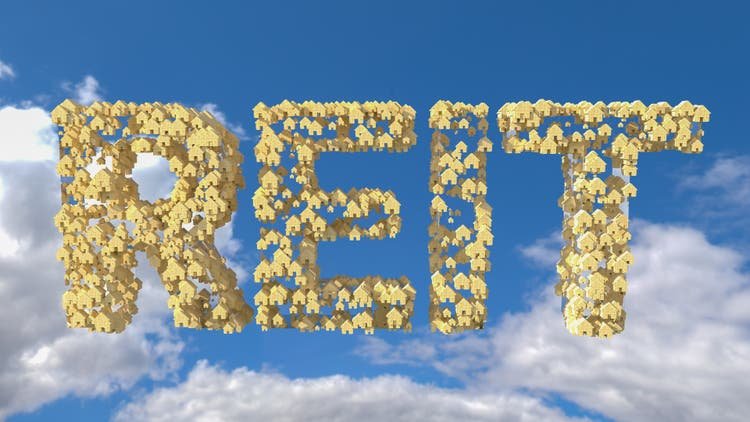 Concept image of Business Acronym REIT as Real Estate Investment Trust. 3d rendering